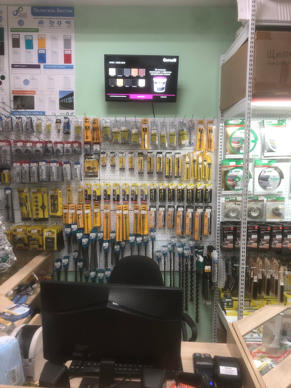 Небольшой магазин, на удивление с большим выбором инструмента и расходников.