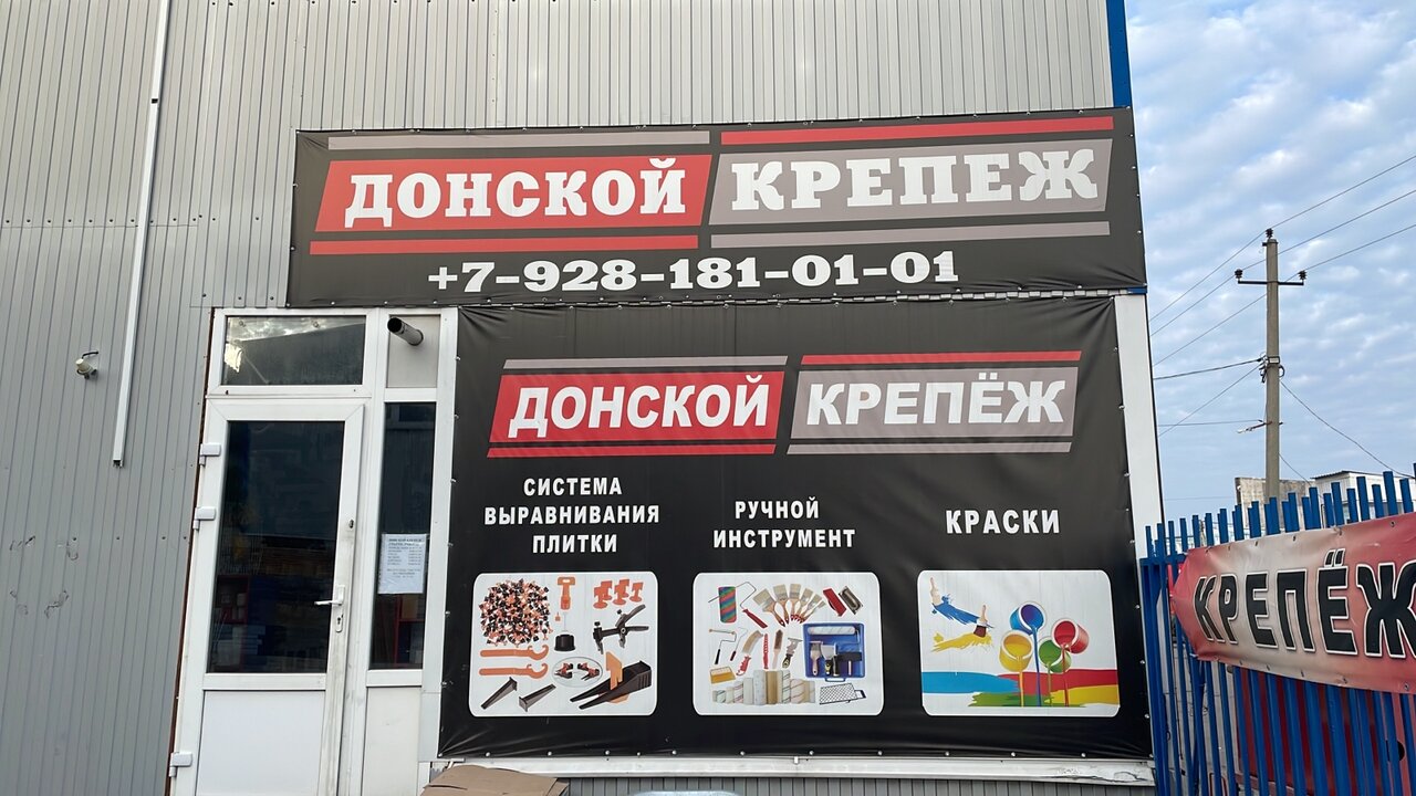 Донской крепеж — строительный магазин в поселке Янтарный, расположенный по адресу: ул. Индустриальная, 6/1. Ассортимент включает материалы, инструменты и товары для строительства, ремонта и отделки. Режим работы: пн-сб 08:00–17:00, вс 09:00–17:00. Контакты: +7 (928) 181-01-01, +7 (928) 803-33-64.