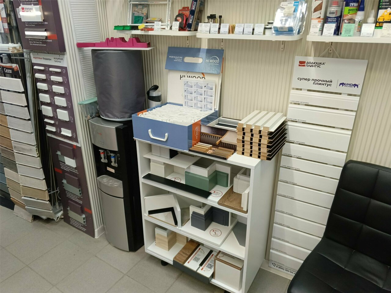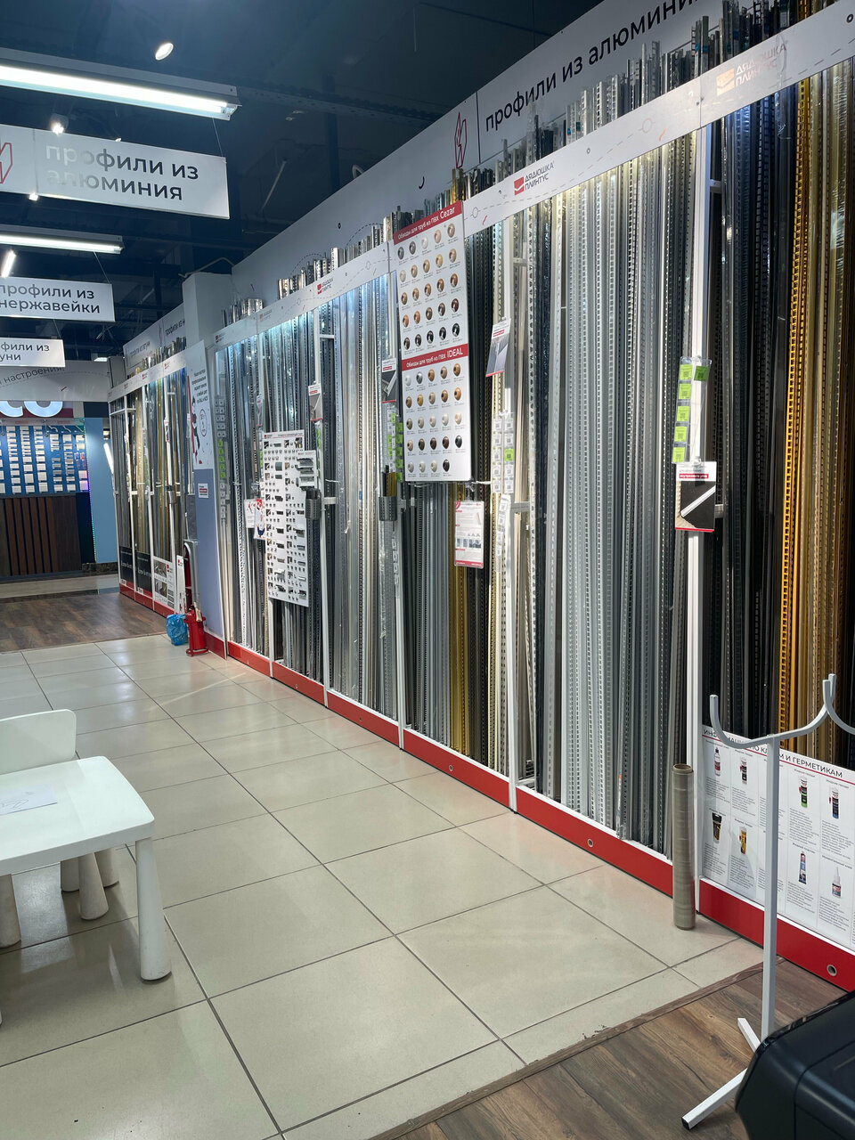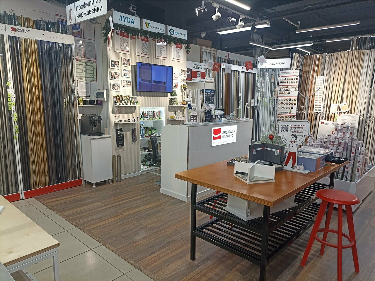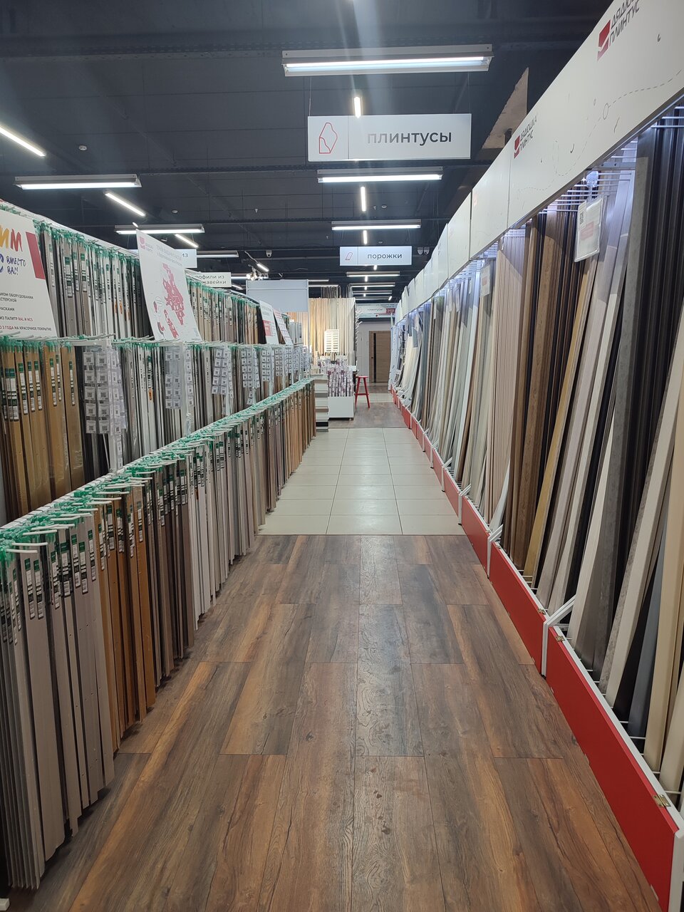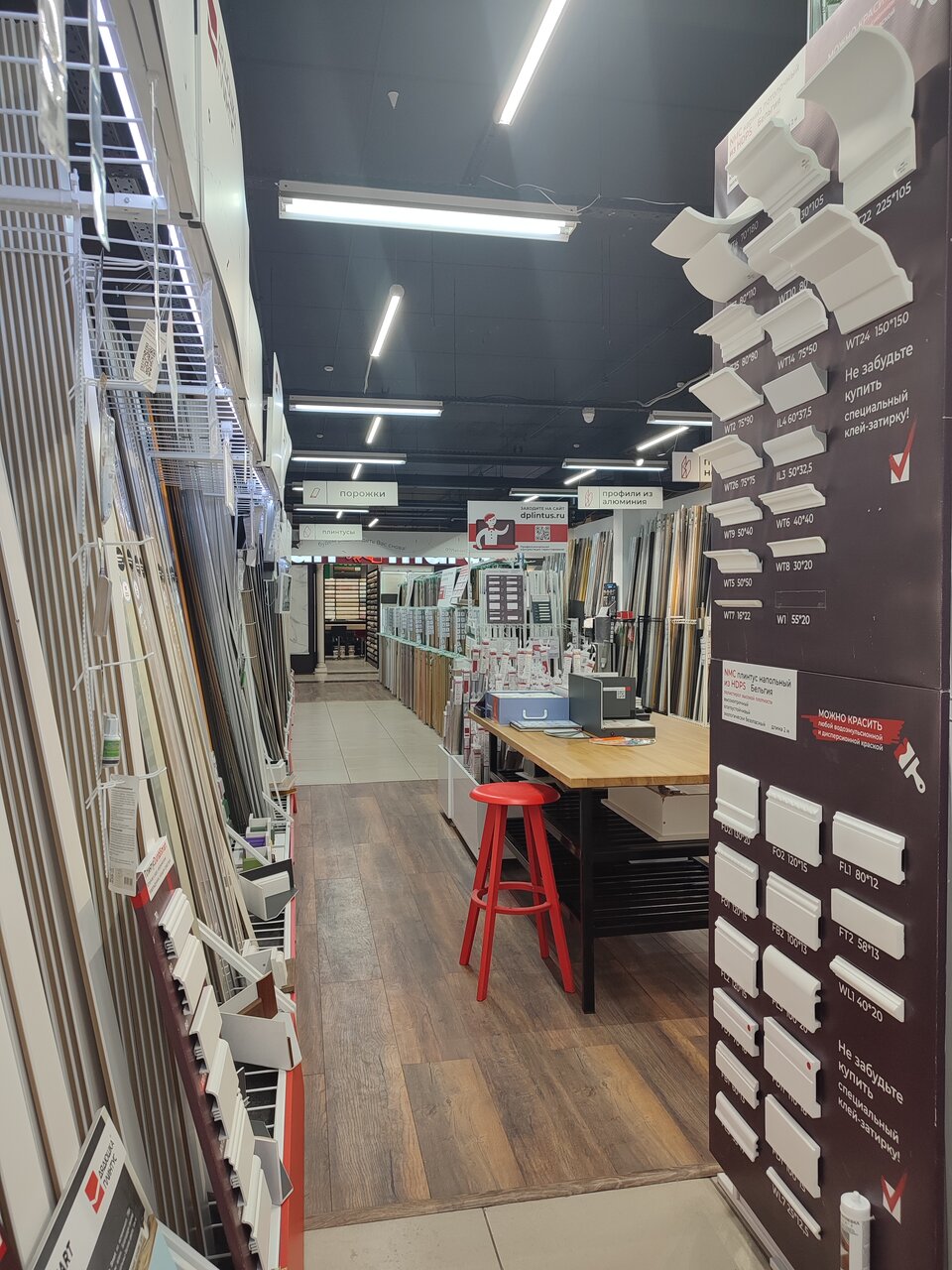 - Большой ассортимент плинтусов (самый большой в городе)