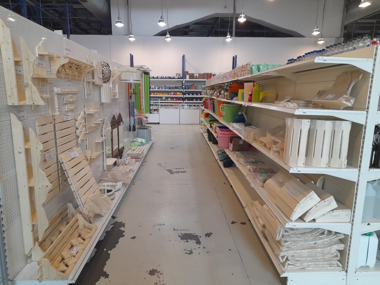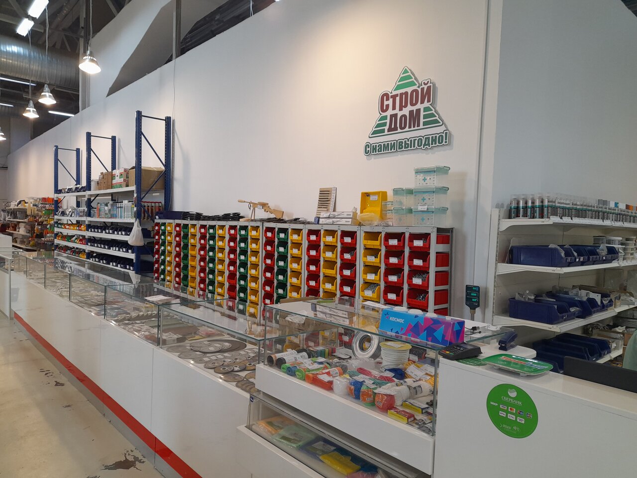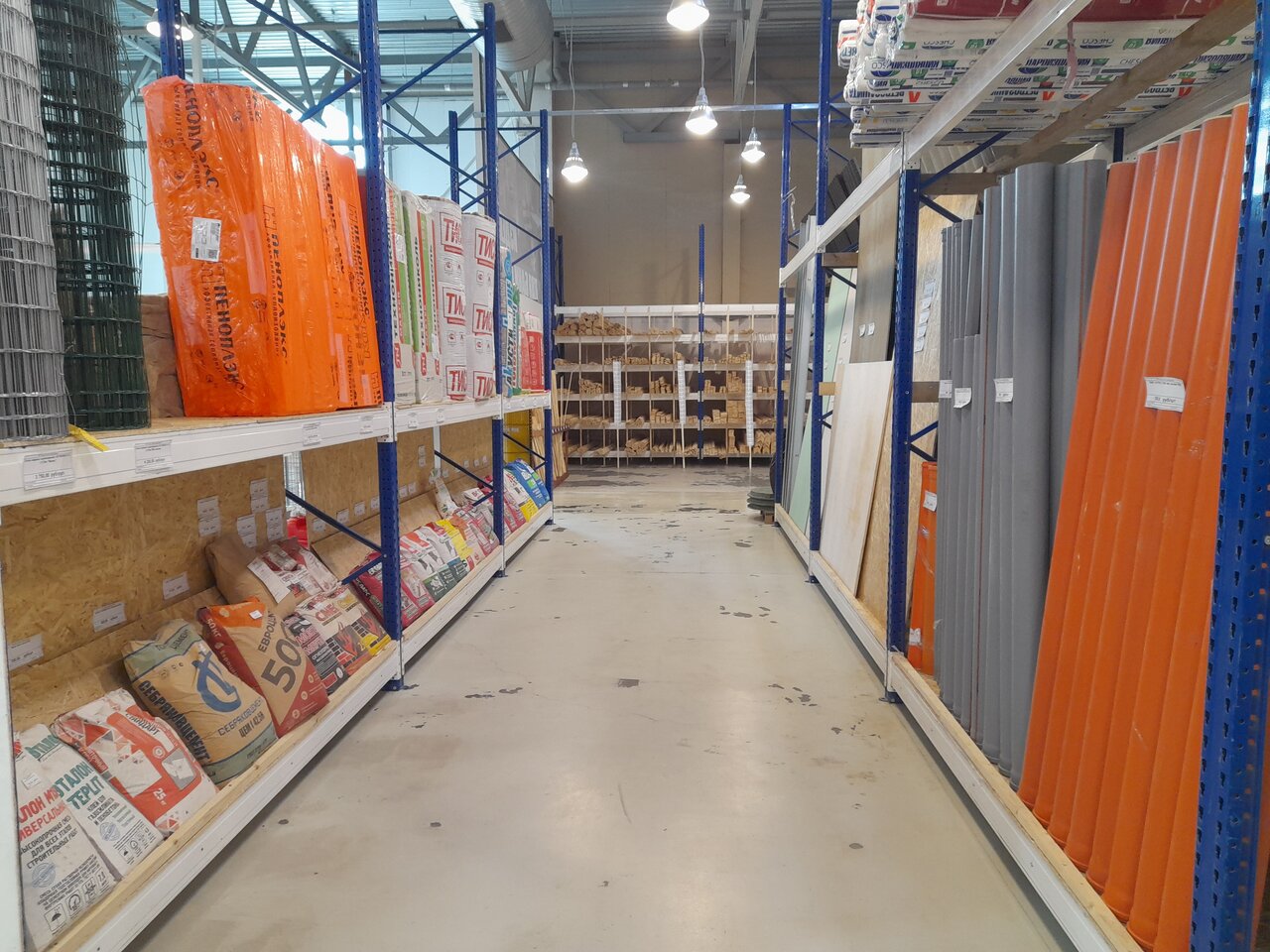 Новый небольшой строительный магазинчик. Метизы, дерево и деревянные изделия. Немного хозяйственных товаров.