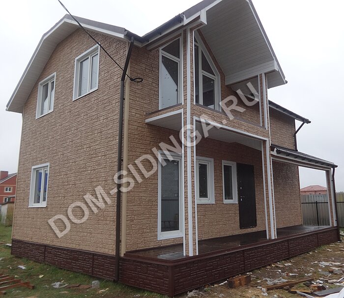 - Сайдинг Ю-пласт Стоун-хаус Кварцит Темно-бежевый 388