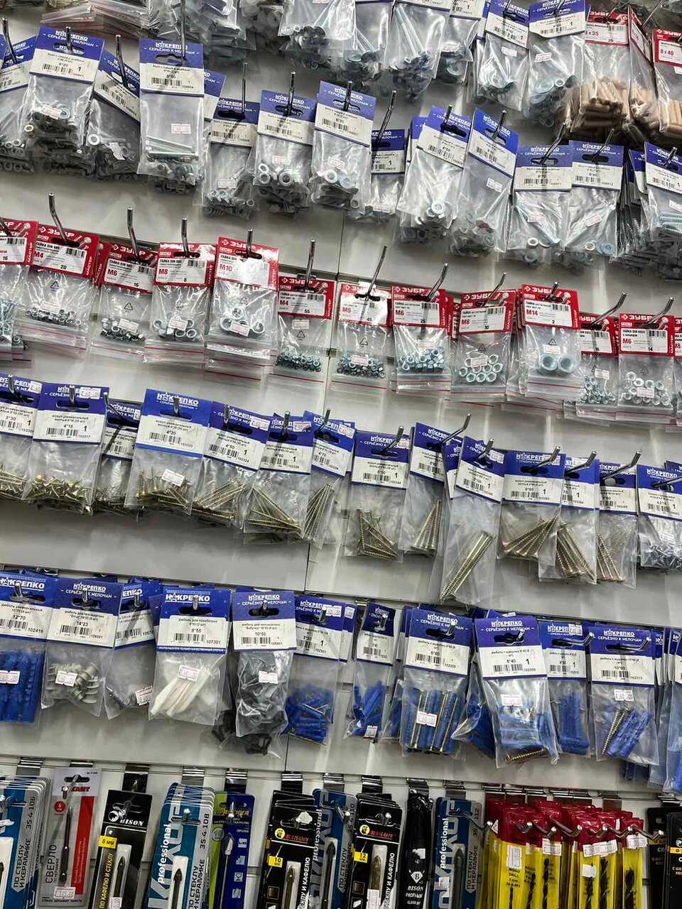 - Хороший ассортимент (крепеж, электрика, бытовая химия, сантехника)