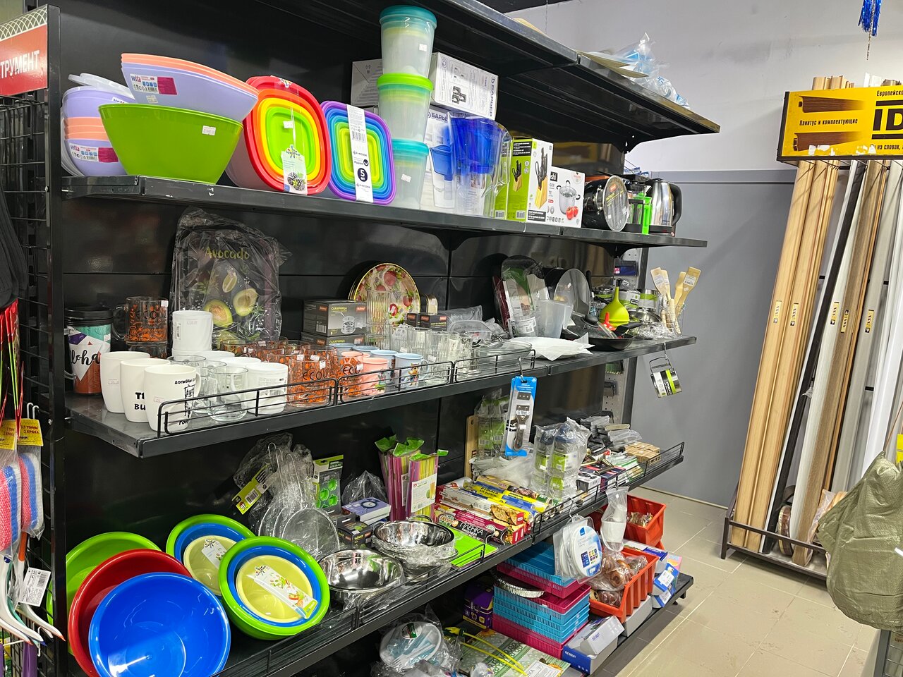 - Наличие необходимых товаров для ремонта и быта