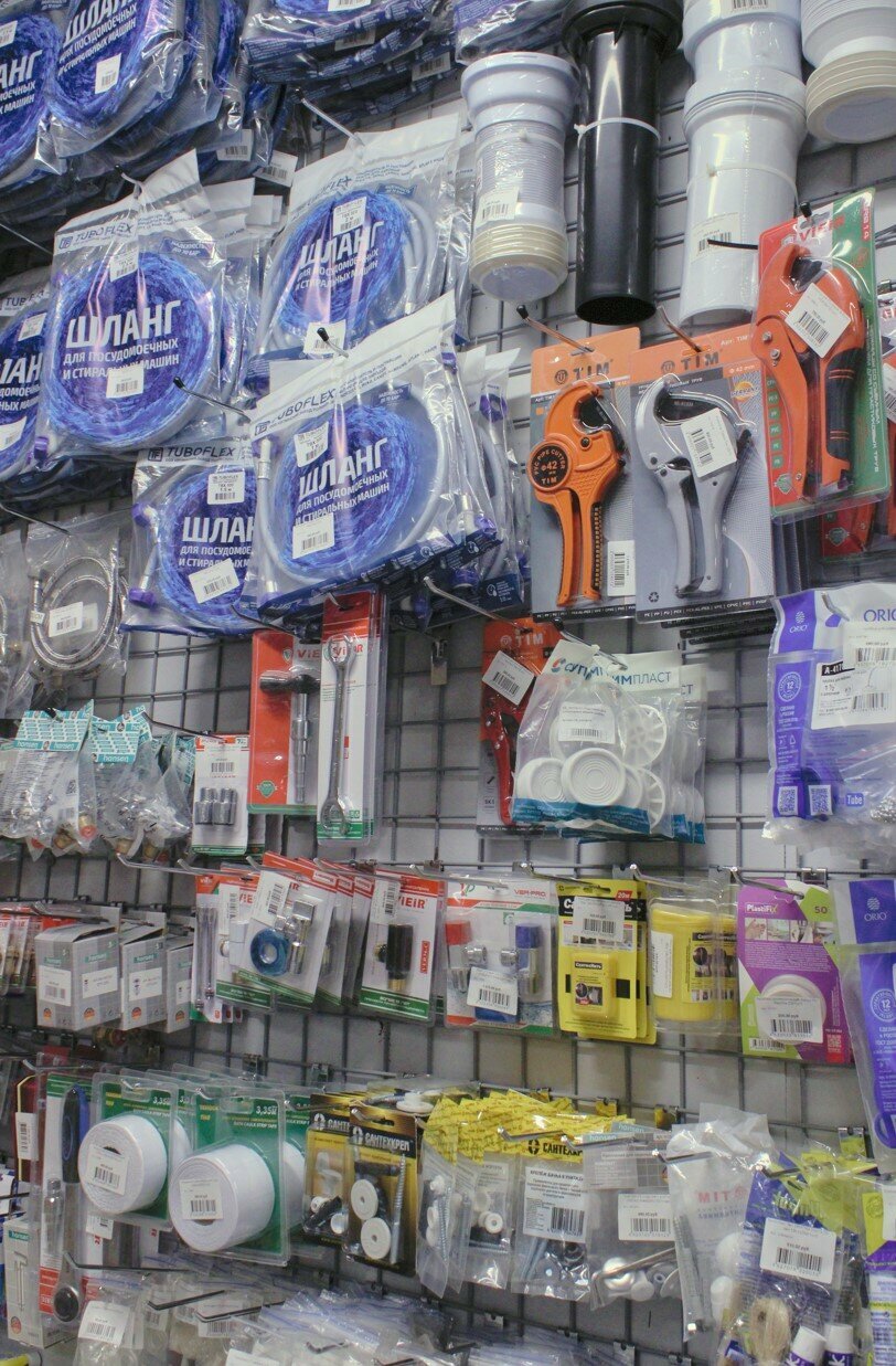 - Широкий ассортимент сантехники и инструментов