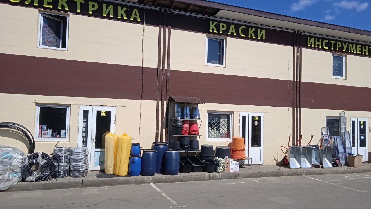 хороший строймагазин, большой выбор , для стройки на даче и для ремонта в городской квартире всё в одном павильоне. можно заехать на территорию на автомобиле, есть парковка для погрузки материала, бесплатно. Сами пилят по Вашим размерам, не дорого. есть доставка. есть возможность оплаты картой, переводом, наличными. очередей нет, персонала хватает, вежливые, грамотные, расторопные молодые люди, всегда встречают с хорошим настроением, делать покупки становится чуточку приятнее, особенно когда делают скидку от объема покупки)