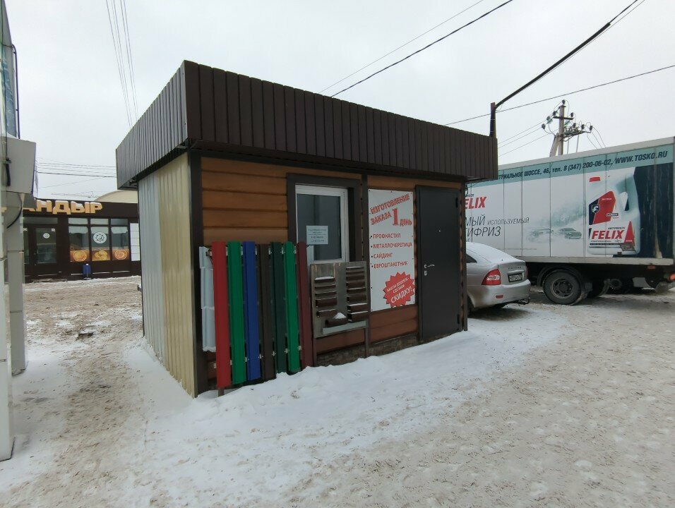 Уфимский профиль – строительный магазин в Зубово, расположенный по адресу Лучистая улица, 14. Специализируется на продаже стройматериалов, включая шлакоблоки, фальцевую кровлю, черепицу, профнастил и металлочерепицу для крыши.